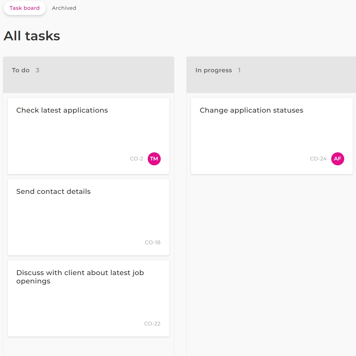 Recruiters see daily priorities at a glance, tasks like candidate follow-ups, document reviews, or client updates. Reduce time wasted on emails with built-in messaging and automated reminders.